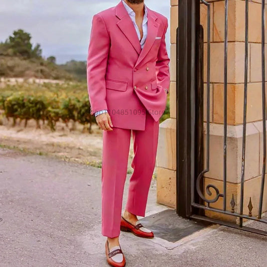 Men's Fuchsia Tuxedo 2-Piece Two-Button Formal Suit Business Unique Single Breasted Notched Lapel Men's Clothing