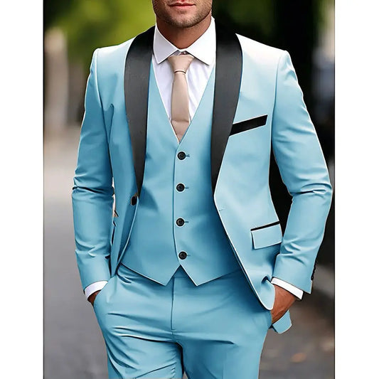 Classic Style Slim Fit Men Suits 3 Piece Groom Tuxedos Shawl Lapel Single Breasted Blazer Vest Pants Sets Business Men Clothing
