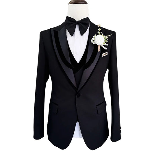 New Costume Clothing Luxury Party Stage Men's Suit Groomsmen Regular Fit Tuxedo 3 Peice Set Jacket+Trousers+Vest Blazers Pants