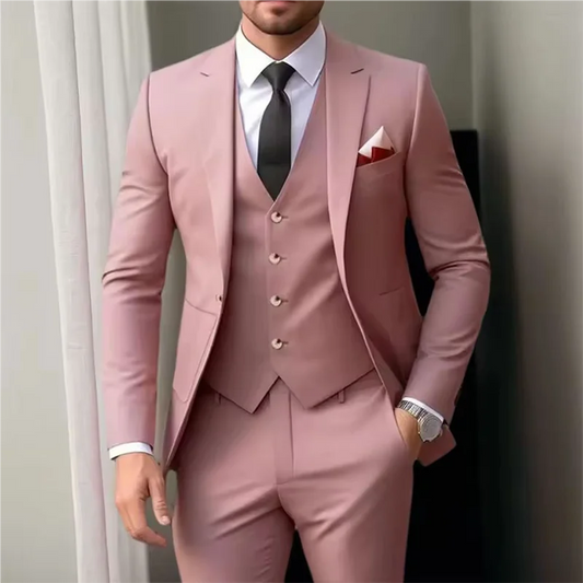 New Dusty Pink Men Suits 3 Pieces For Wedding dresses Tailor Made Single Breasted Slim Fit Male Clothing (Jacket+Pants+Vest )