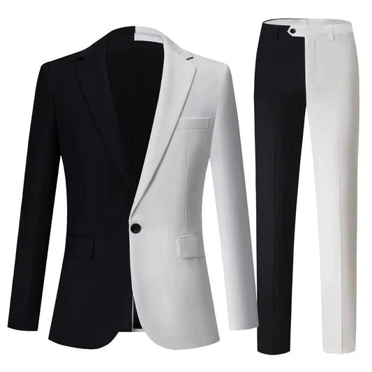 Black and White Men Suits Formal One Button Notch Lapel Slim Fit 2 Piece Jacket Pants Male Clothing High Quality Outfits
