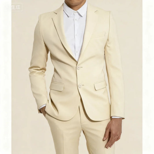 Chic Linen Beige Suits for Men Flat Front Single Breasted Notch Lapel Skinny Blazer Casual 2 Piece Jacket Pants Male Clothing