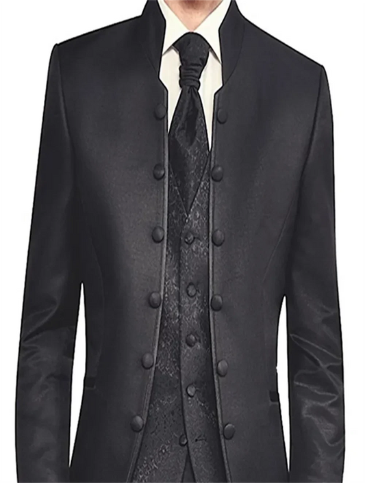 Black Men Embroidered Suit 3 Piece, Jacquard Fabric Dress Jacket and Vest with Trousers, Branded Clothing