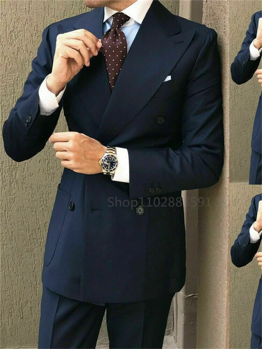 2 Pieces New Custom Double Breasted Dark Blue Men Suits Casual Male Blazers Slim Fit Groomsmen Costume Men Clothing