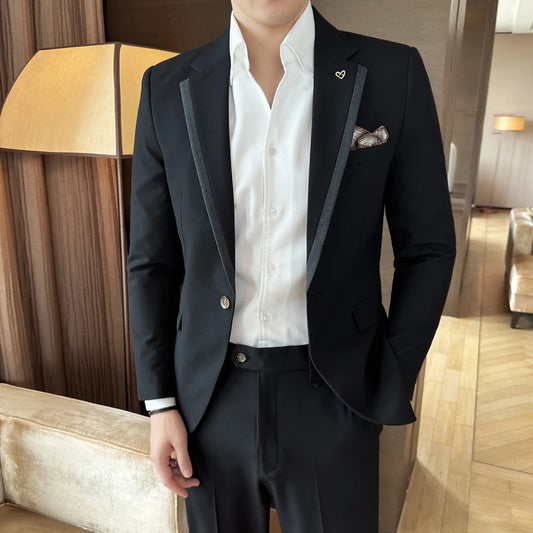 2025 Men's Business Suit Slim-fit Wedding Dress Two-piece Set M-4XL Stylish Handsome All-in-one Banquet Trousers