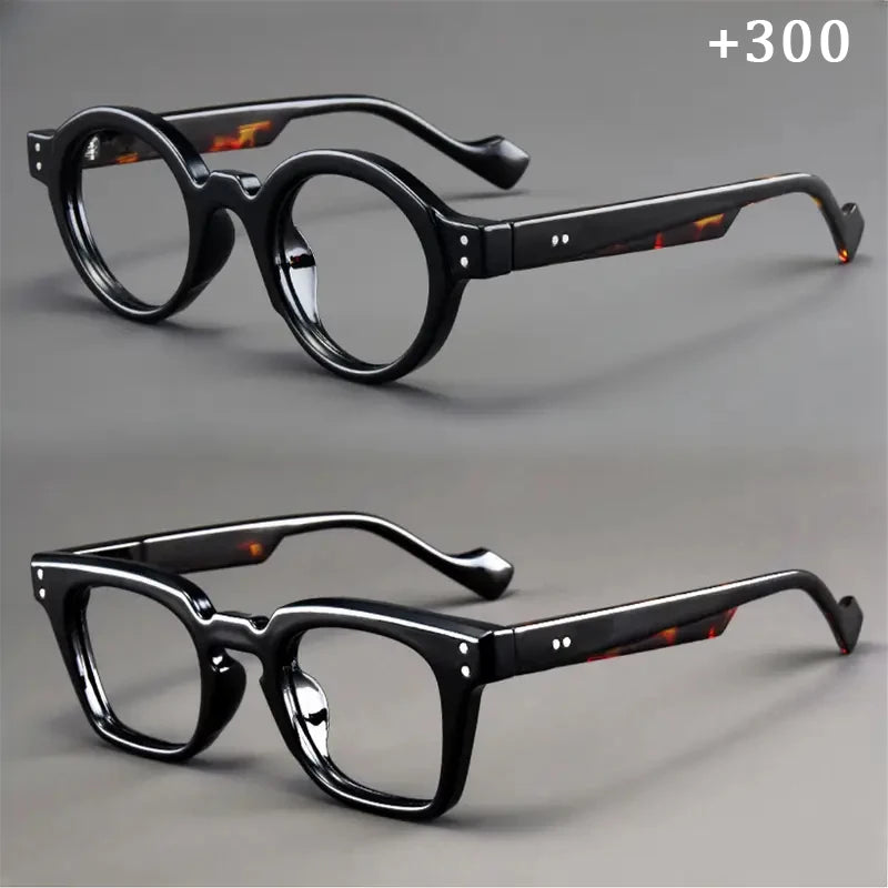 A set of 2 vintage round and square reading glasses, suitable for both men and women, designed to assist with presbyopia