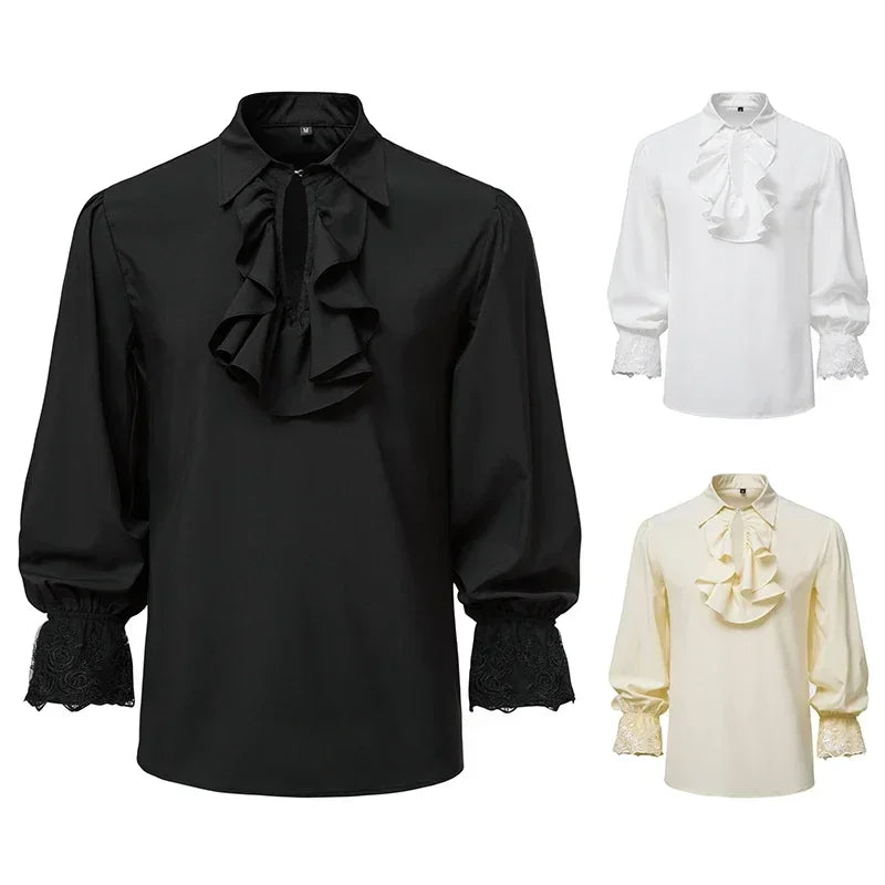 Medieval Vintage Autumn Casual Shirts Steampunk Solid Long Sleeve Ruffled Shirt Gothic Blouse Tops Halloween Cosplay Dress