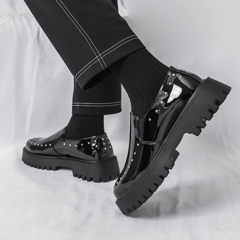 Men's Leather Casual Handmade Shoes Platform Loafers Slip-on High Quality Thick Bottom Loafers Shoes Fashion Party Wedding Shoes