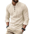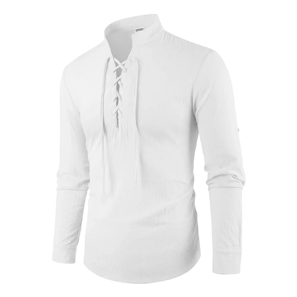 Men's Vintage V-neck T-shirt Cotton Linen Pirate Medieval Viking Gothic Tops Shirts Long Sleeved Cospaly Halloween Party Top