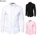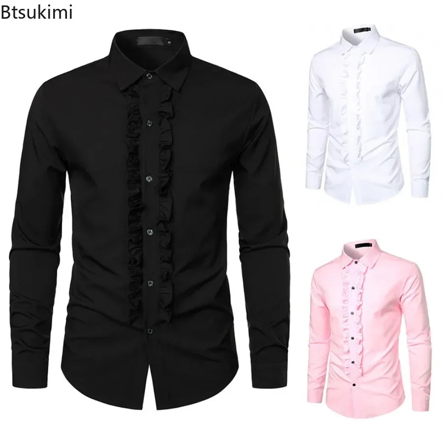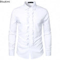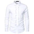 New 2025 Men's Long Sleeve Tuxedo Shirts Fashion Party Wedding Male Dress Shirts Ruffle Pleated Design Solid Shirt Chemise Homme